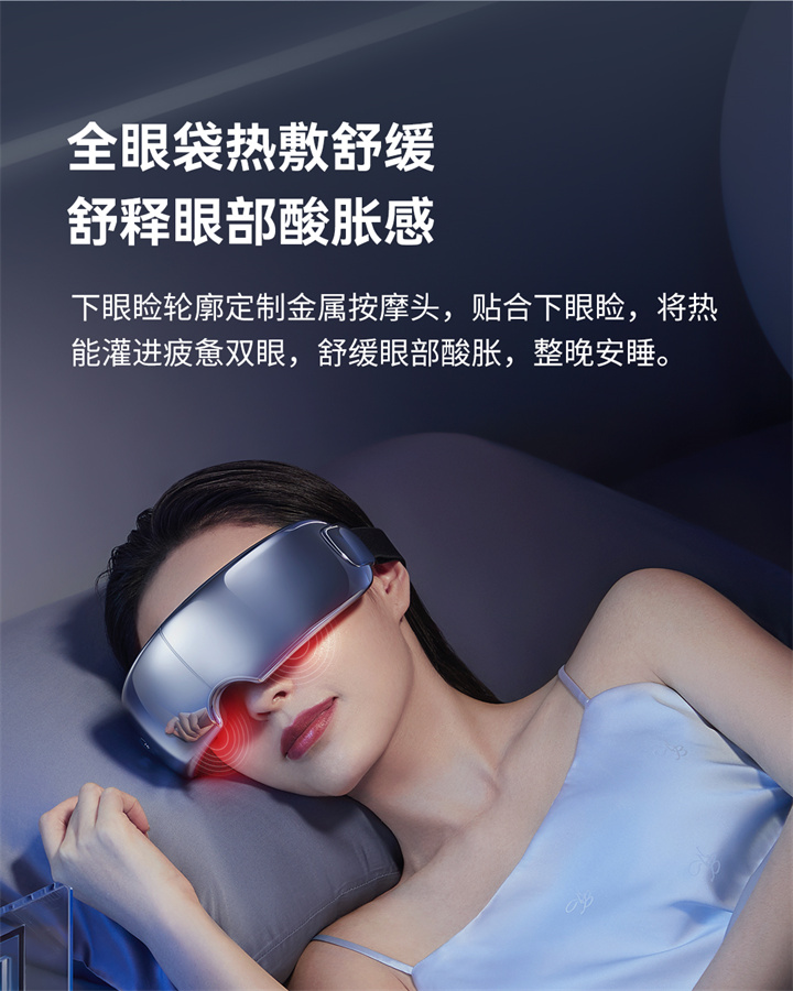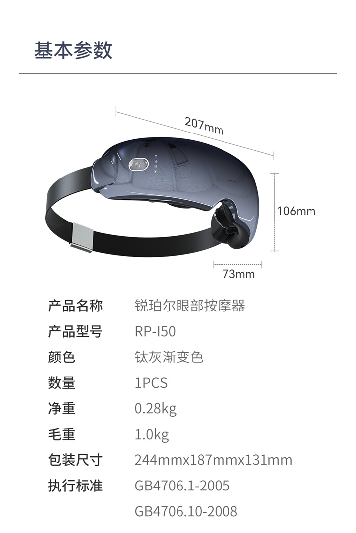 • 產(chǎn)品簡(jiǎn)介:銳珀爾眼部按摩器RP-I50,根據國人眼型設計,機身弧度更貼合眼眶,貼心預留立體凹槽,保護眼球,按摩后視力不模糊,自帶應急可視窗,可舒緩全黑密閉焦慮感;內置大自然的場(chǎng)景音效,讓眼睛和心靈雙重放松,還有藍牙連接,可以隨心聽(tīng)歌、聽(tīng)書(shū)等,更多神奇功能,等待您親自試戴發(fā)現……