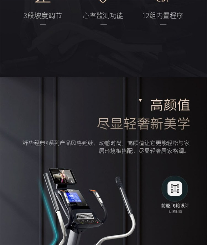 舒華仰望商用V8智能橢圓機自發(fā)電四軌漫步運動(dòng)健身器材SH-E800