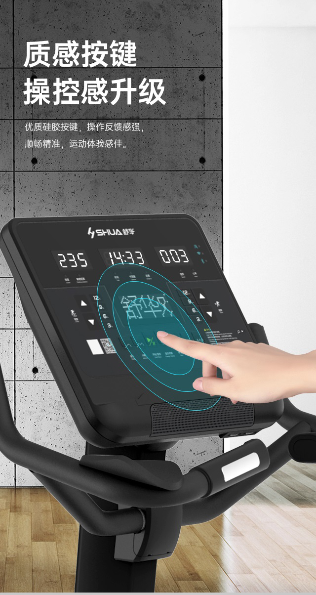 舒華立式商用健身車(chē)SH-B9100U(V10)觸屏版擁有超大顯示和操作屏幕, 可以任意設置阻力、時(shí)間和距離等參數,還可以即時(shí)顯示心跳和轉速等數據,同時(shí),SH-B9100U提供多項科學(xué)運動(dòng)處方,更輕松掌握運動(dòng)節奏。