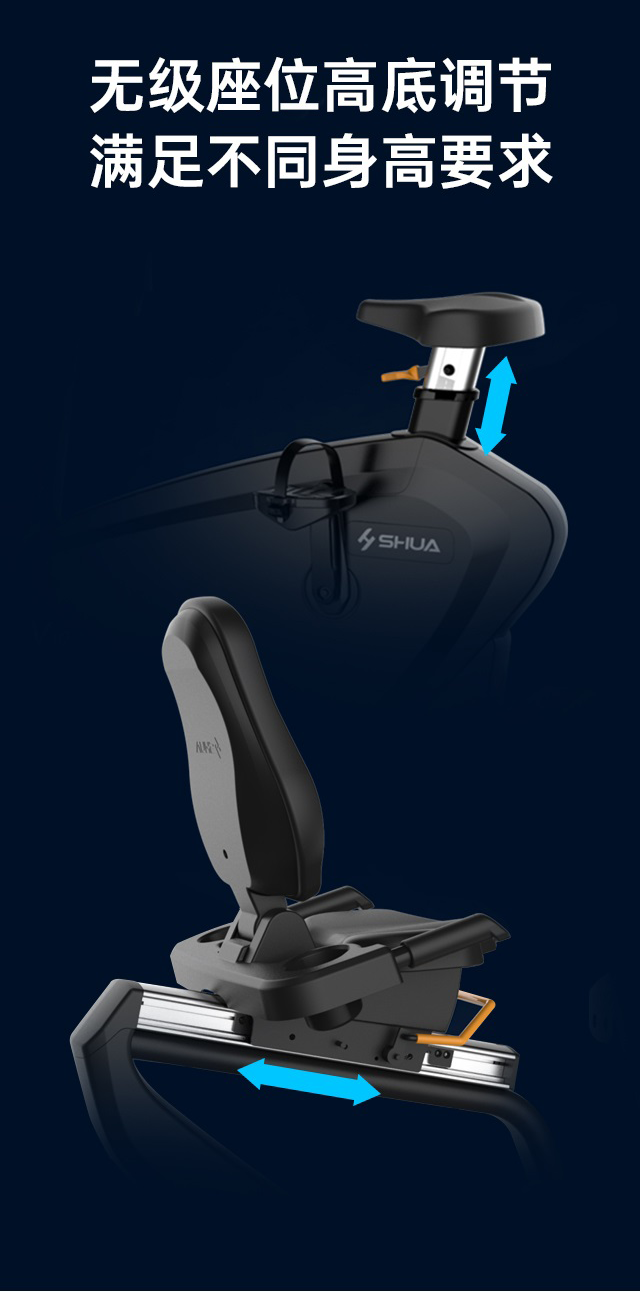 舒華臥式商用健身車(chē)SH-B9100U(V10)采用自發(fā)電,40段電磁控阻力系統,9.3kg飛輪重量。