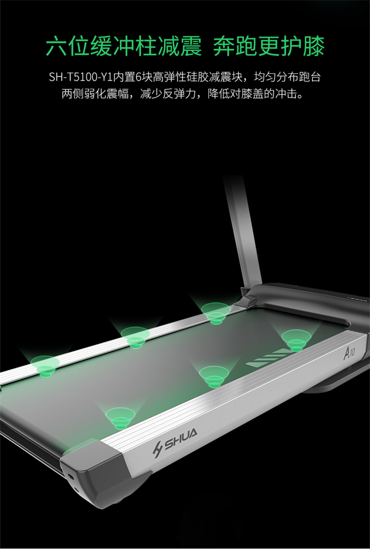舒華家用跑步機SH-T5100持續馬力達1.25HP,具有500×1350mm的跑臺,運用無(wú)線(xiàn)心率接收模塊監測心率,運用6位硅膠減震設計,最大承重是126kg,可以滿(mǎn)足大多數家庭的使用。