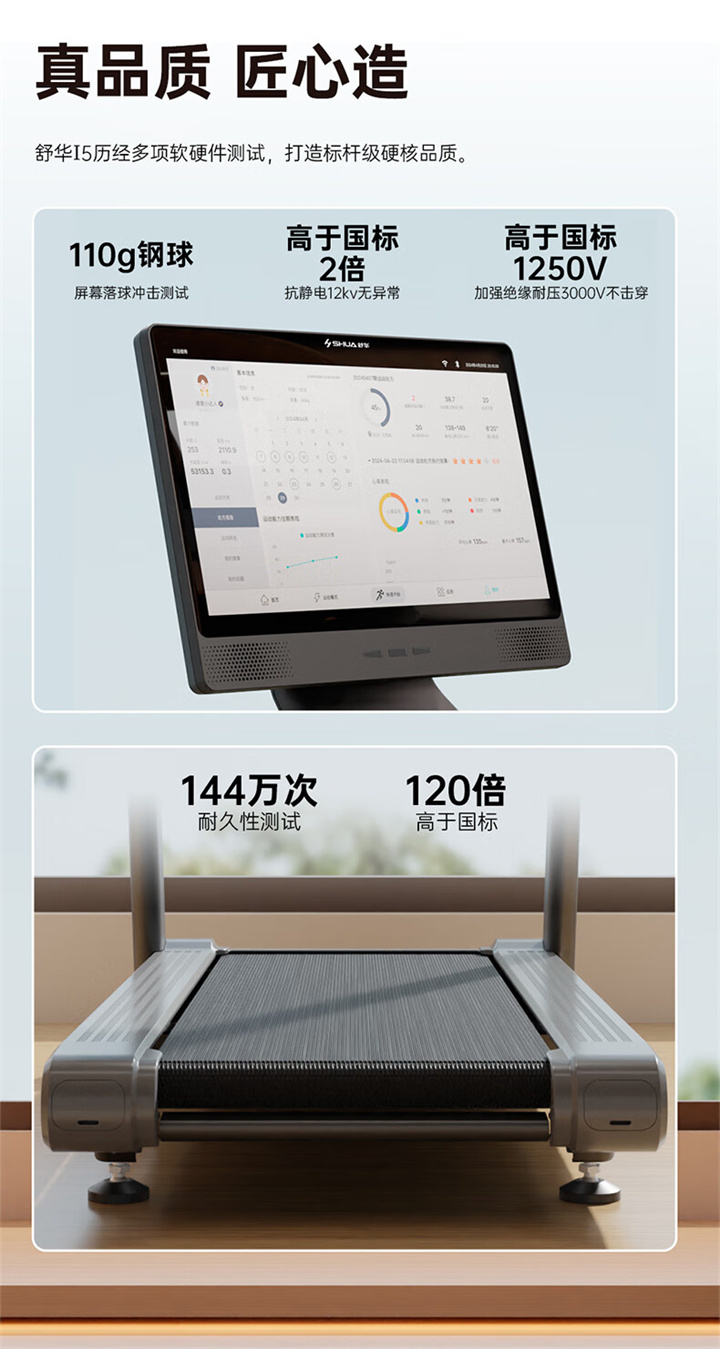舒華I5智能家用跑步機是由舒華體育聯(lián)合中國體育科學(xué)學(xué)會(huì )、上海體育大學(xué)運動(dòng)科學(xué)學(xué)院教授陸大江等權威機構、專(zhuān)家共同研發(fā)設計。獨特之處在于它結合國際科學(xué)跑步研究理論,能夠針對不同用戶(hù)進(jìn)行運動(dòng)能力測試,并根據測試結果生成因人而異的有氧運動(dòng)處方。這意味著(zhù)每個(gè)用戶(hù)都能得到一個(gè)適合自己的運動(dòng)方案,從而更好地達到運動(dòng)效果。這一創(chuàng )新技術(shù)可以確保用戶(hù)在運動(dòng)過(guò)程中能夠保持在最佳的區間狀態(tài),從而提高運動(dòng)安全性和有效性。