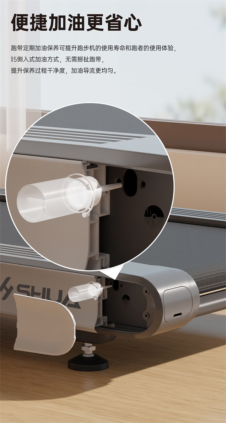 舒華家用跑步機SH-T5100持續馬力達1.25HP,具有500×1350mm的跑臺,運用無(wú)線(xiàn)心率接收模塊監測心率,運用6位硅膠減震設計,最大承重是126kg,可以滿(mǎn)足大多數家庭的使用。